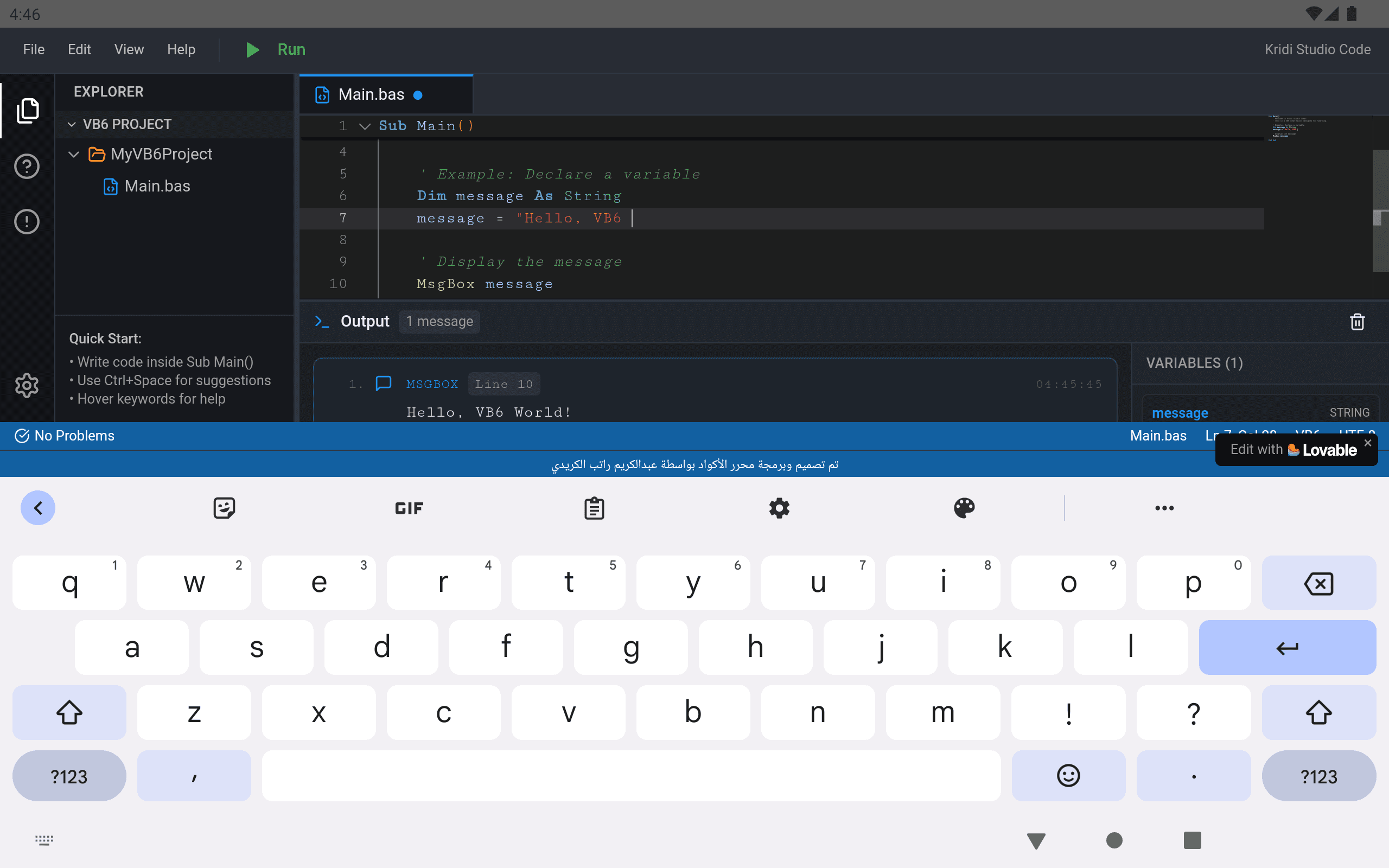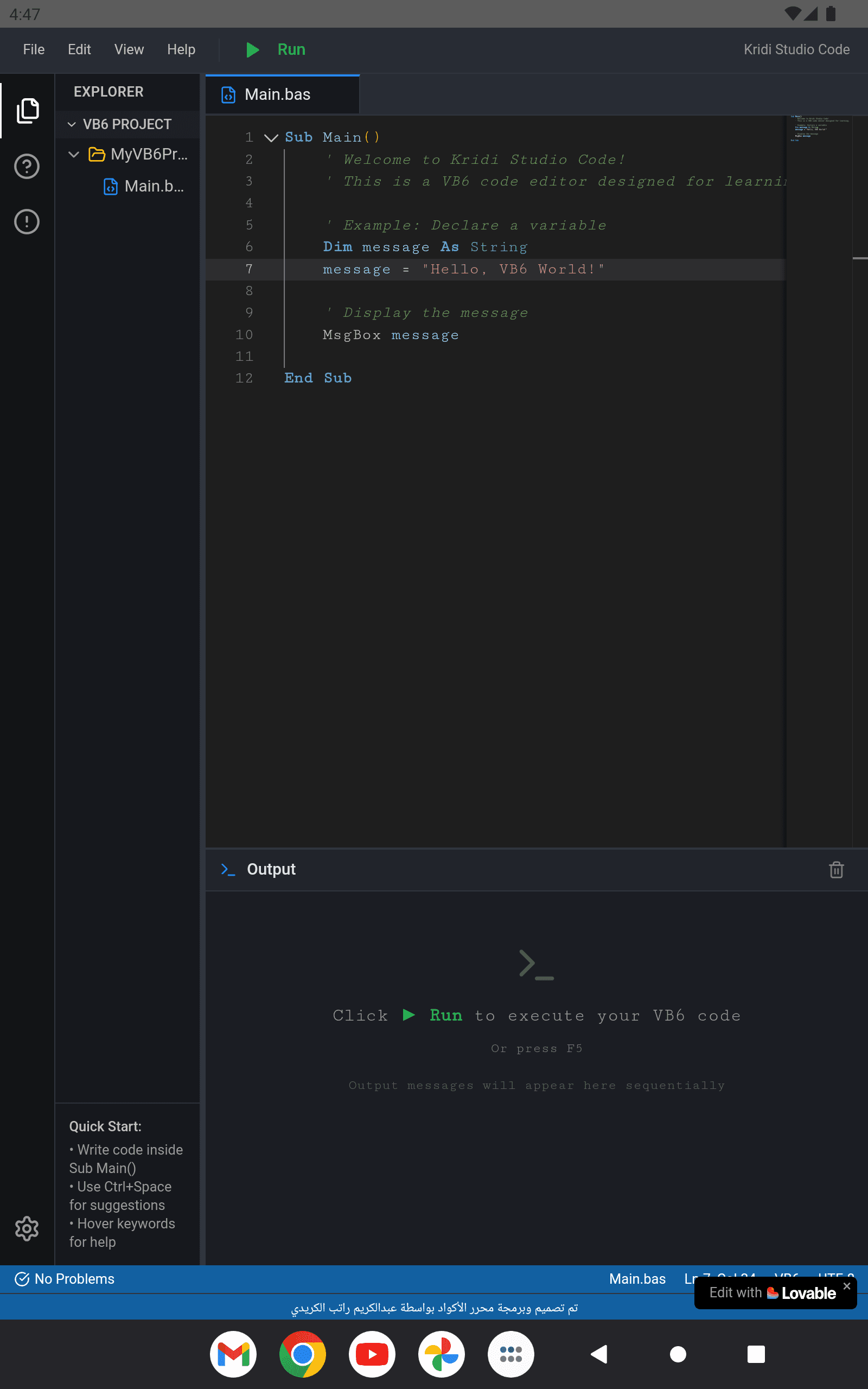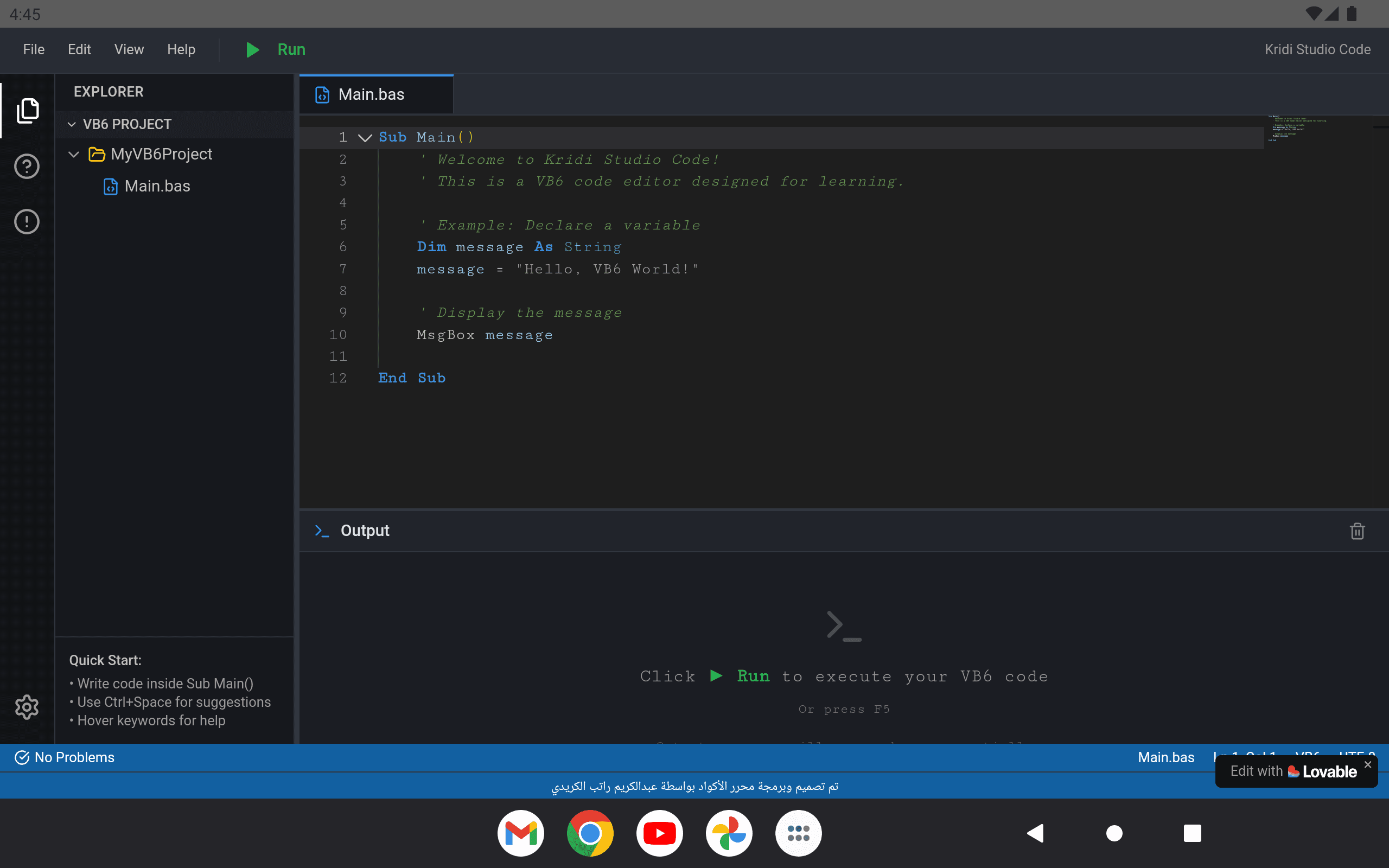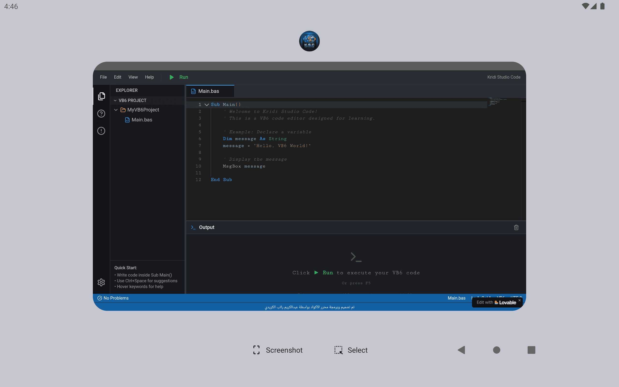 تم إنشاء تطبيق K.S.C – Kridi Studio Code ليتيح لكل الطلاب كتابة أكواد Visual Basic 6 بسهولة، حتى لو لم يكن لديهم جهاز لابتوب، ودون الحاجة للتعامل مع عملية تثبيت Visual Studio القديمة والمعقدة.
